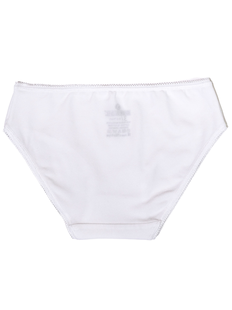 Классические белые трусики-слипы - универсальная вещь под любой наряд. Изделие сшито из натурального хлопка. Этот материал хорошо впитывает влагу и запахи, не вызывает раздражений, позволяет коже дышать и долго сохраняет привлекательный внешний вид одежды. Небольшой процент (5%) эластана, входящего в состав ткани, обеспечивают растяжку вещи и плотную посадку белья. Пояс и края вырезов для ног обрамляет эластичное «зубчатое» кружево, которое является и украшением и профилактикой скорого изнашивания белья в этих зонах. Пояс белья дополнительно украшает маленький бантик, расположенный по центру.