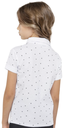 Поло для девочки с коротким рукавом -уютная и стильная вещь для повседневной носки. Изготовлено из мягкого хлопкового материала, который дарит комфорт и позволяет коже дышать. Классический крой с отложным воротником и короткими рукавами делает модель практичной и удобной как для школы, так и для прогулок. Веселый и красочный принт сердечек добавляет игривость и настроение в образ маленькой модницы.