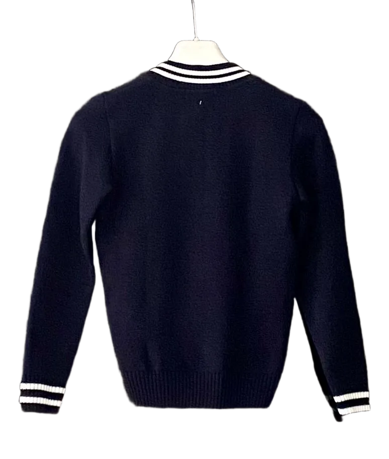 Классический вязаный бомбер с белой полосой на молнии отлично подойдет для посещения школы,официальных мероприятий и для повседневной носки.